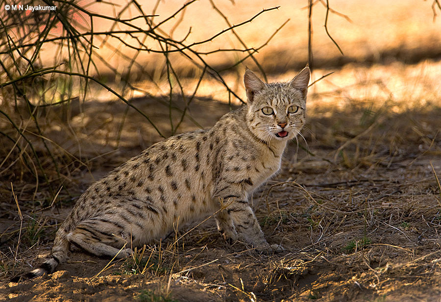 This is the smallest cat of the world. It is found in Sri Lanka and India only. In India it is distributed in Western Ghats, Madhya Pradesh, Gujarat, Rajasthan and Kashmir. The back portion of the body contains rusty coloured spots. It survives on rats and small birds.
