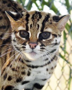 This cat looks like a cub of a leopard. Its yellowish coat bears black spots. The stomach is white in colour. It preys on rats and small birds.
