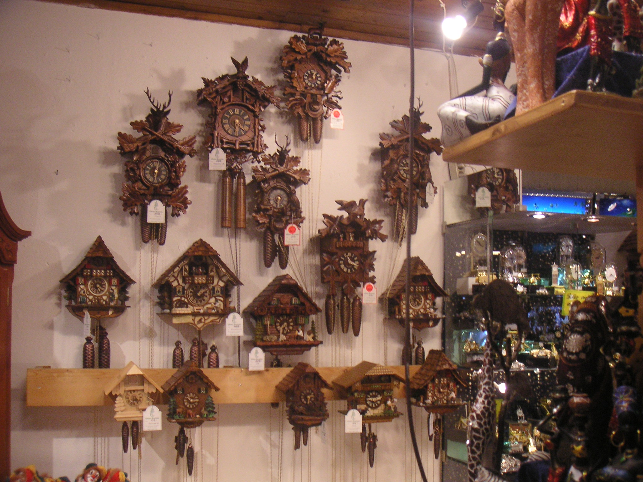 Scattered around the Titisee Lake are cuckoo clock shops. Black Forest is home to the cuckoo clock and even has a German clock route for the tourists, giving the horological history of the region. The shops are a delight to be in with a tremendous variety of mechanical cuckoo clocks chiming in unison. The clocks do not just have the cuckoos peeping out of closed doors, but also dancing dolls, flying birds, and even whole farmhouses — with men cutting firewood, women drawing water from the well, hens pecking on grains and children chasing each other — that magically come to life with the strike of each hour.