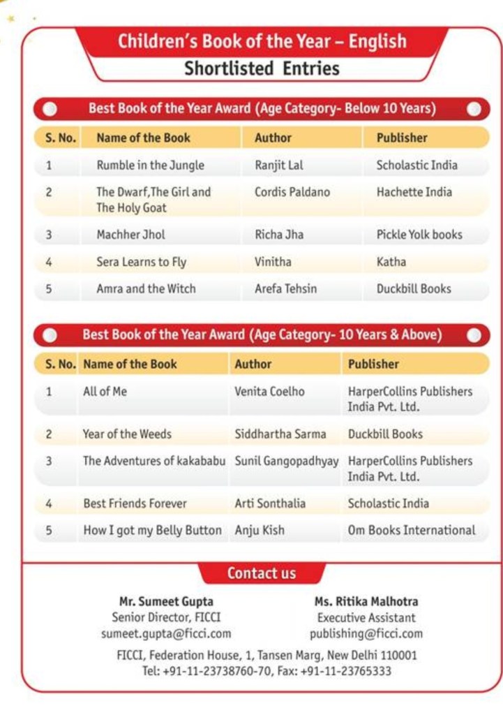Amra and the Witch shortlisted for Federation of Indian Chambers of Commerce & Industry (FICCI)‘s Best Book of the Year (age category – below 10 years) along with books by some wonderful authors like Siddhartha Sarma, Ranjit Lal and Richa Jha!
