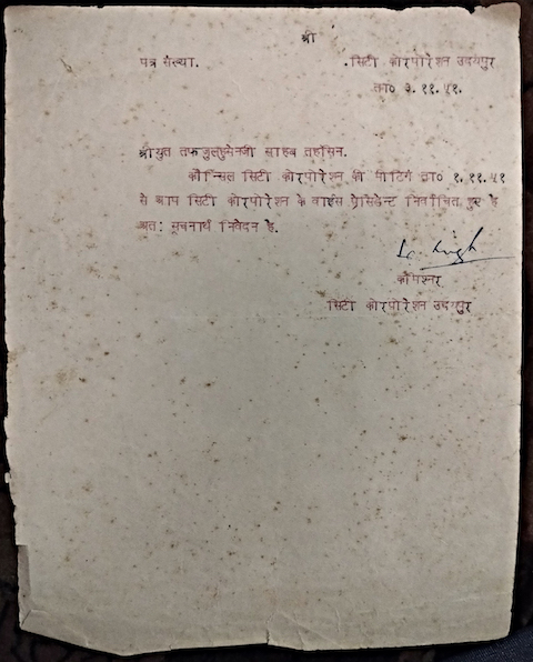For the first time, when a railway was being laid in Udaipur in 1925, Allahbakhsh constructed around 80 kilometers of the railway line near Thamla village, in a thickly forested track. Allahbakhsh was also a celebrated shayar who was bestowed the takhallus (pen name) “Tehsin” by a peer saint. In the 1980s, a woman from Taunk came looking for his works to Udaipur. But his manuscript had been disposed of to a paper recycler 40 years back by Taffazul’s elder brother.