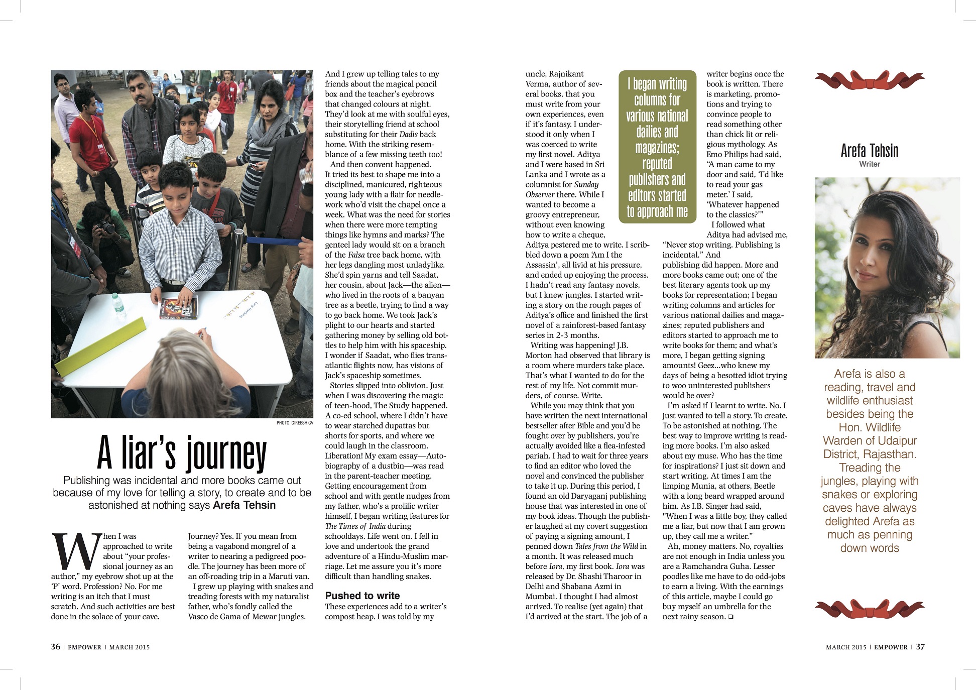Arefa Tehsin is the author of 20+ books (publisher Penguin Random House, HarperCollins, National Book Trust etc), both for children and adults, and contributes columns, features and travel articles to various publications like Conde Nast Traveller, The Indian Express, Hindustan Times, The Hindu, Deccan Herald, Outlook Money and TerraGreen. The Great Indian Safari (Puffin) has been shortlisted for BTB Wordsmith of Year 2025 and the AG-BLF 2025 Book Award. The Witch on the Peepul Tree, her first novel for adults, published by HarperCollins, was “super-shortlisted” for The Asian Prize for Fiction 2023; the only book from India to be in “The Asian Trio”. Her book The Chirmi Chasers was shortlisted for Neev Book Award 2021. Amra and the Witch was shortlisted for FCCI’s Best Book of the Year Award 2019. She was shortlisted for the The Hindu Young World-Goodbooks Best Author Award 2017 for her book Wild in the Backyard.  The picture book The Elephant Bird was read at 3200+ locations in India from the slums to the Presidential library on the International Literacy Day, 2016 and translated in 35+ languages. Do Tigers Drink Blood and 13 Other Mysteries of Nature is being translated in Chinese. A few schools in India and Sri Lanka have taken up her books as textbooks and supplementary readers. The fantasy book ‘Iora and the Quest of Five’ was released in the U.S. and U.K. in 2022. Daughter of the renowned naturalist Dr. Raza H. Tehsin, Arefa has spent her childhood days treading jungles with her father, exploring caves and handling snakes. She was appointed as the Honorary Wildlife Warden of Udaipur district and has pursued nature conservation through her writings and columns.