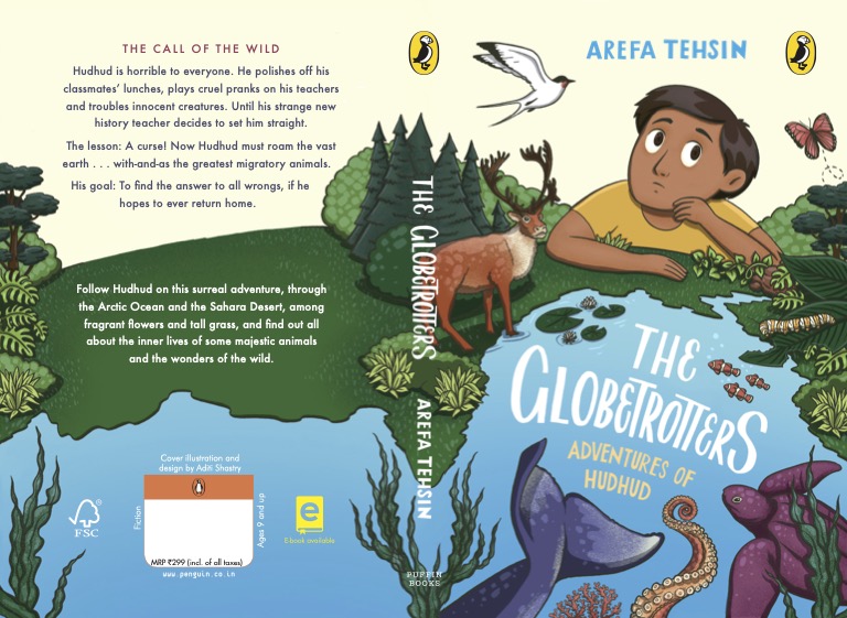 The lesson? A curse! Now Hudhud must roam the vast earth . . . with-and as-the greatest migratory animals. His goal? To find the answer to all wrongs. And so begins Hudhud’s remarkable journey: as a blue whale calf separated from his mother in the deep; as a trusting caterpillar who befriends a hunting spider; as a competitive caribou on a perilous trek; as an Arctic tern too scared to fly . . . But fly across the world he must, if he hopes to ever return home.