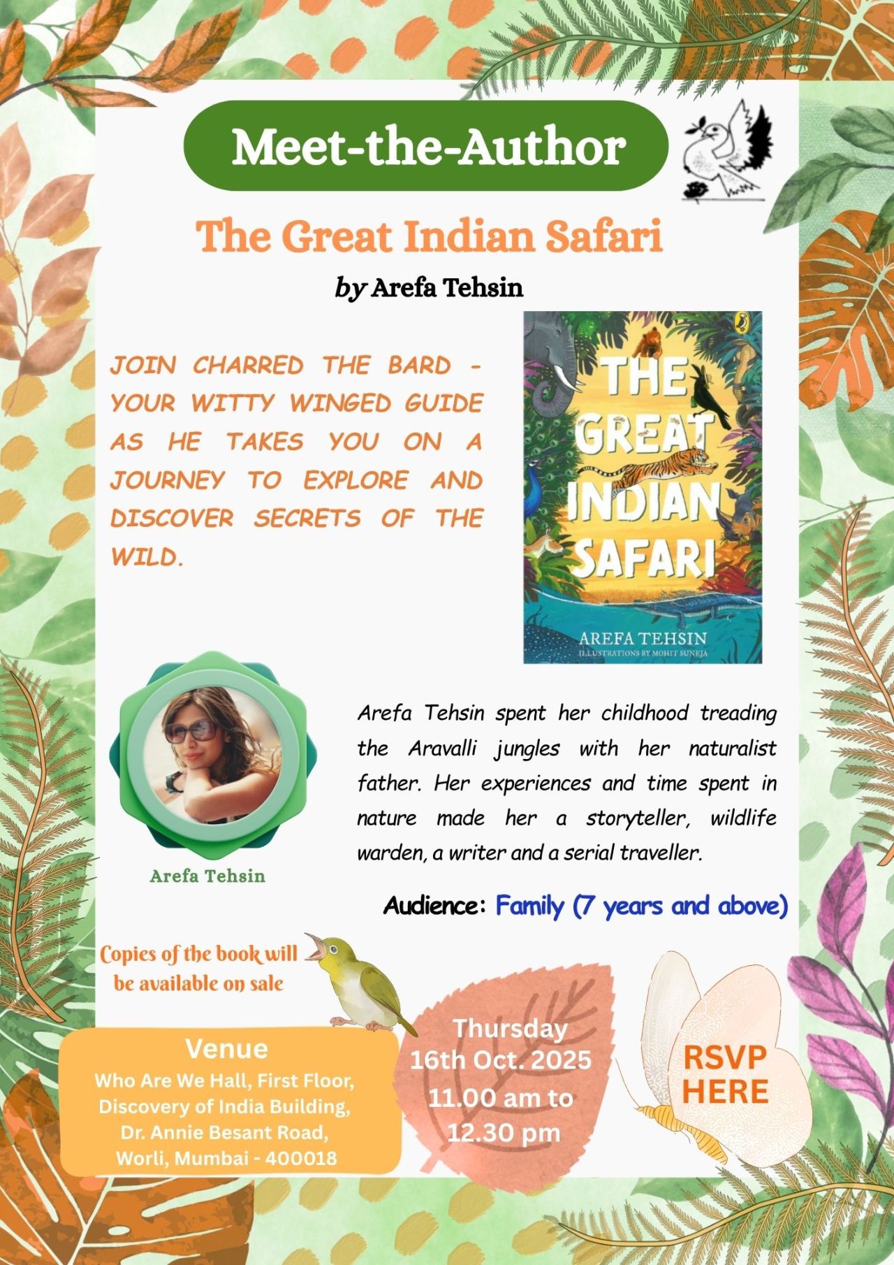 He soars across India’s amazing forests, introducing young explorers to the country’s wild and wacky animals. From lush jungles to sandy deserts, misty mountains to sparkling seas―Charred’s journey is packed with adventure.