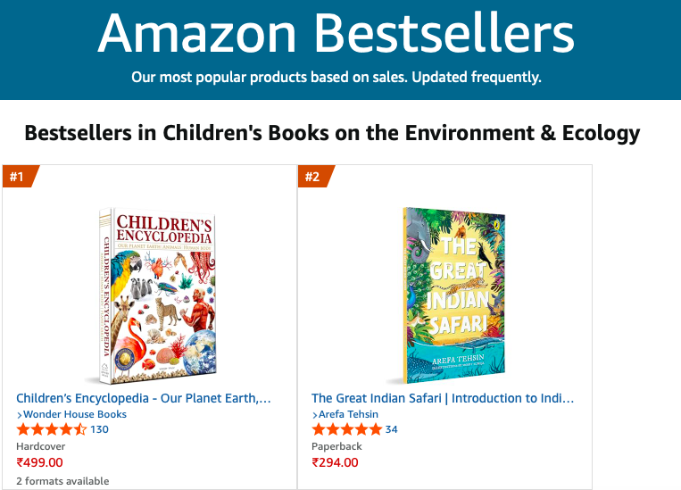 The Great Indian Safari No.2 on the Amazon Bestseller in Children’s books on Environment and Ecology. And no.6 on Recycling and Green Living.
